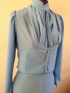 Each piece is a unique commission, and here’s our contribution, a reproduction of Wallis Simpson’s stunning two-piece wedding suit. Do come and have a look – like all items on show it’s up for sale!