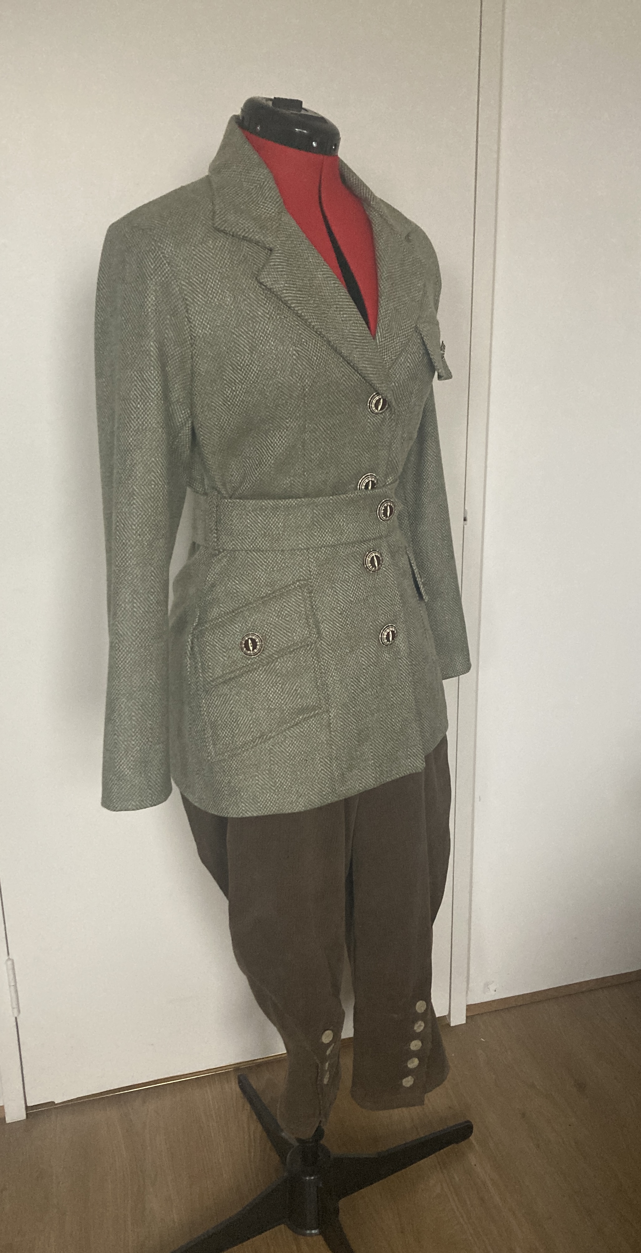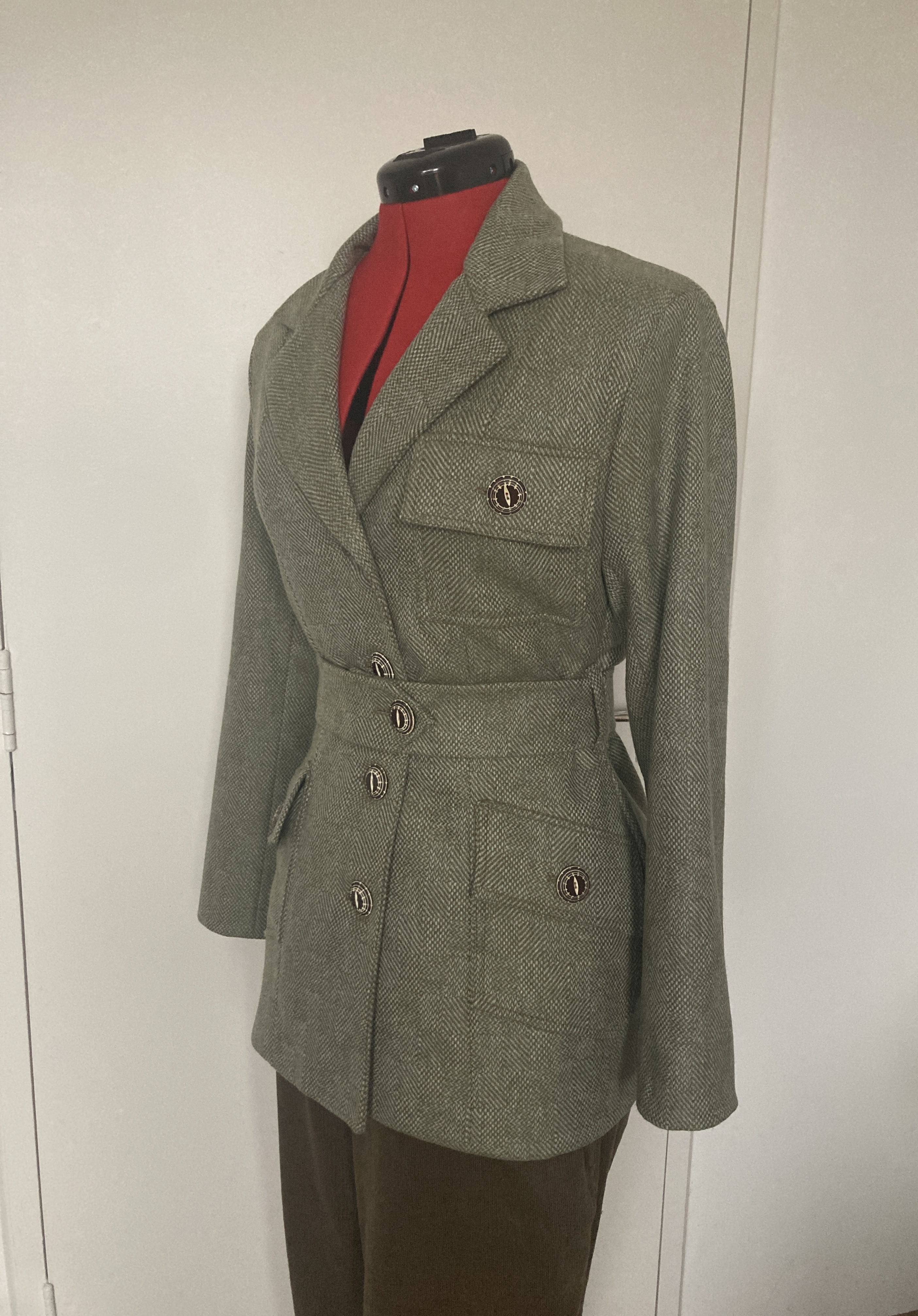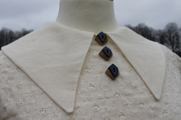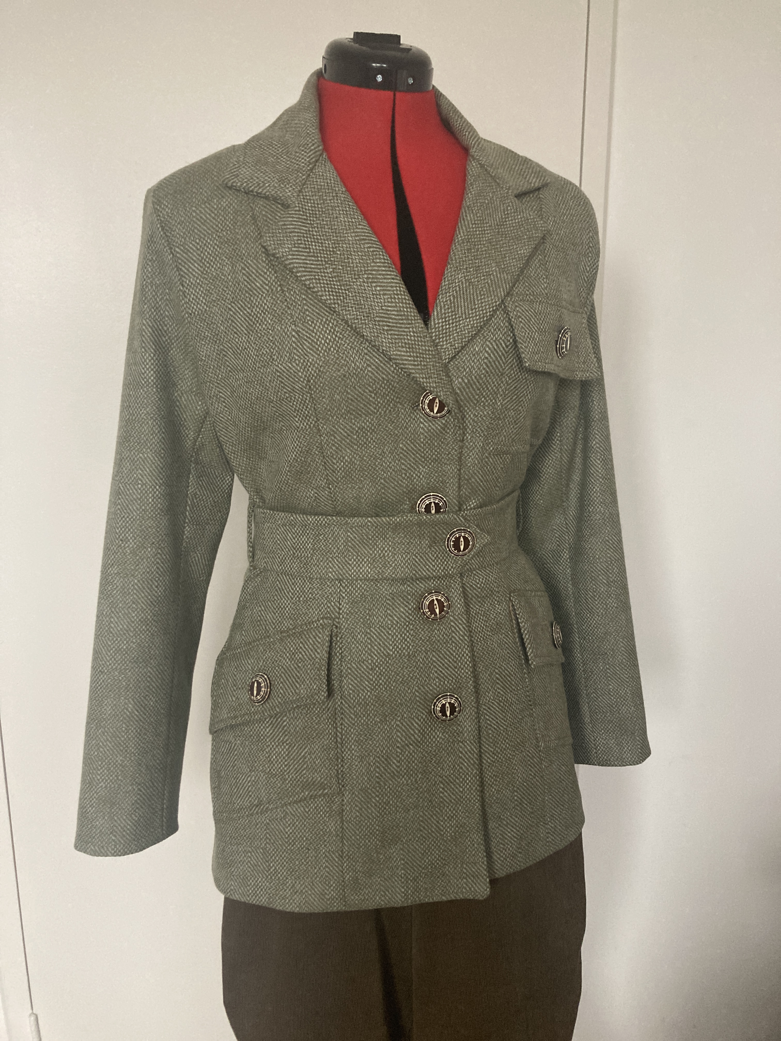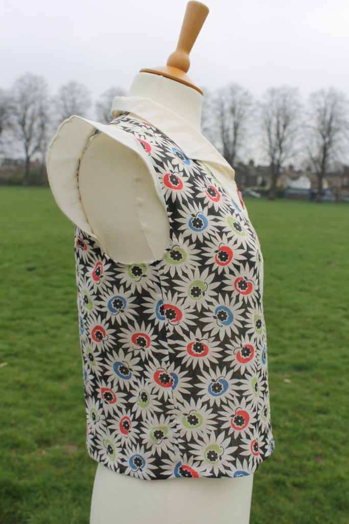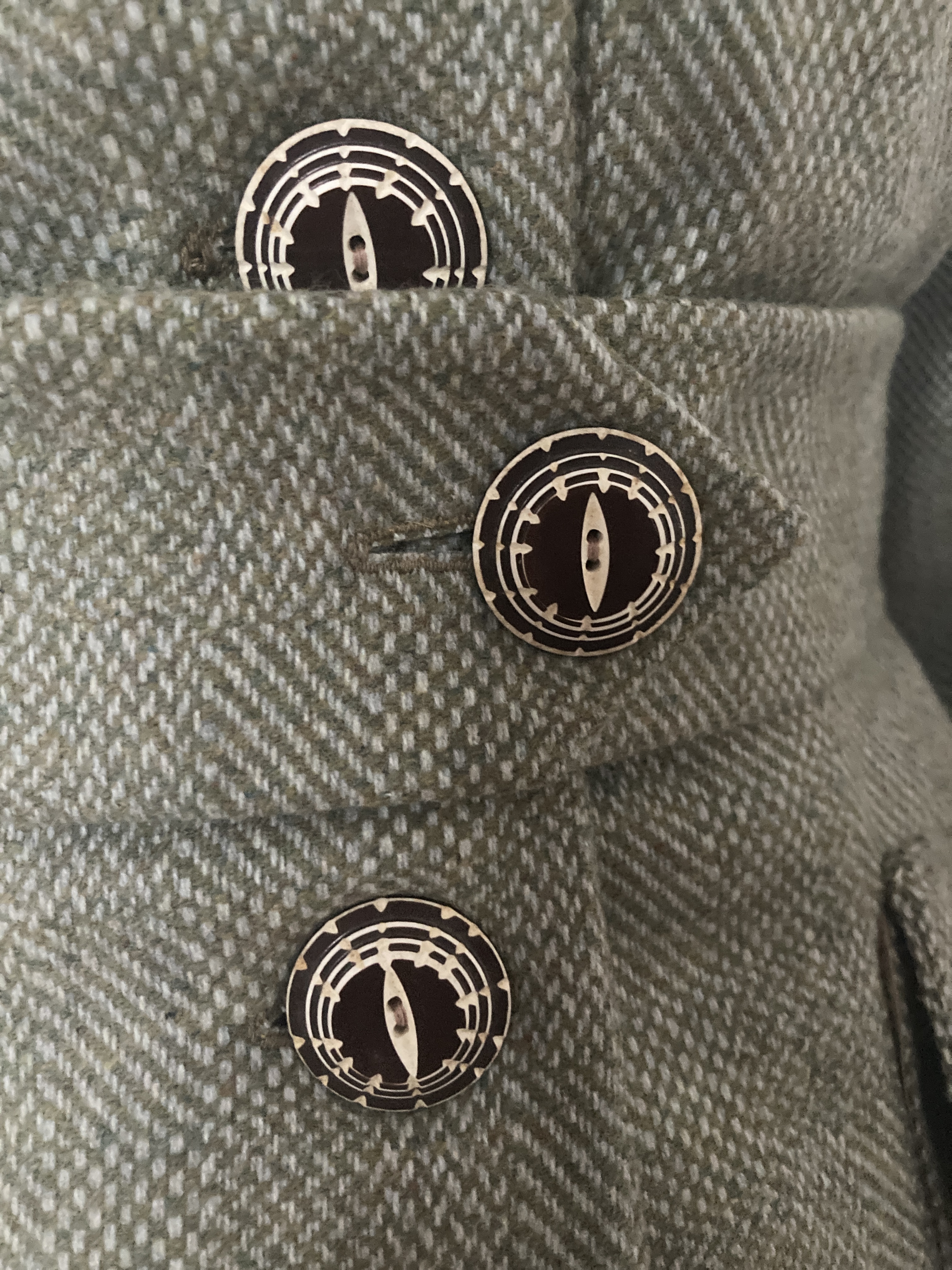 There is a slight Ancient Grecian feel to it, favoured by the designers in the 1930s, combined with the art deco style of the period, here the bias cut gown with the asymmetric diagonally cut neckline and the diagonally cut panels in bodice and skirt forming a peak at the left side of the waistline, a feature very typical of the era. With two deep long darts along the sides of the bodice and low cut back.