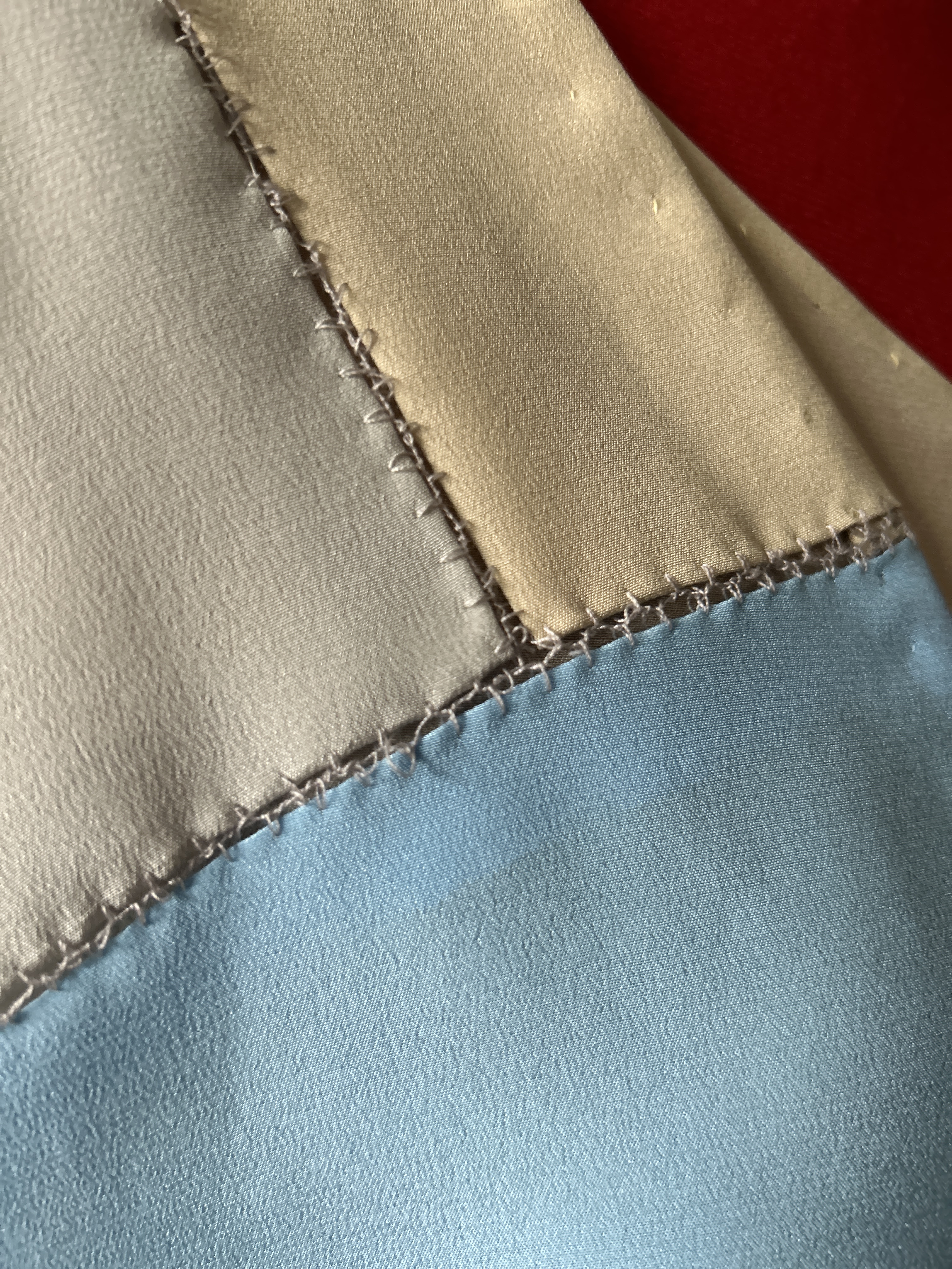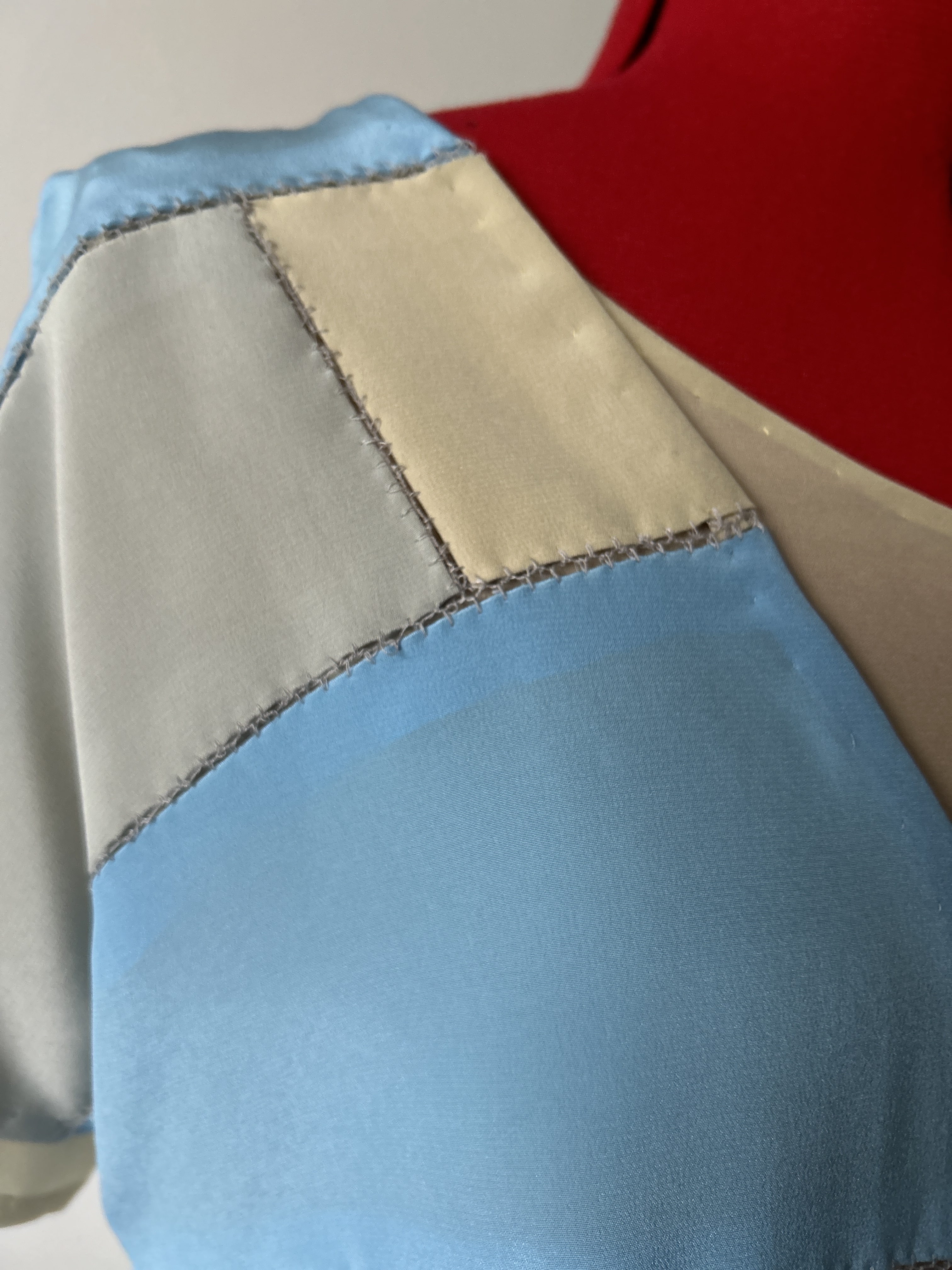 Here I present a beautiful early 1930s inspired evening dress in powder blue silk crepe back satin, that I originally designed and made for the lovely and talented Rosamund Pike.