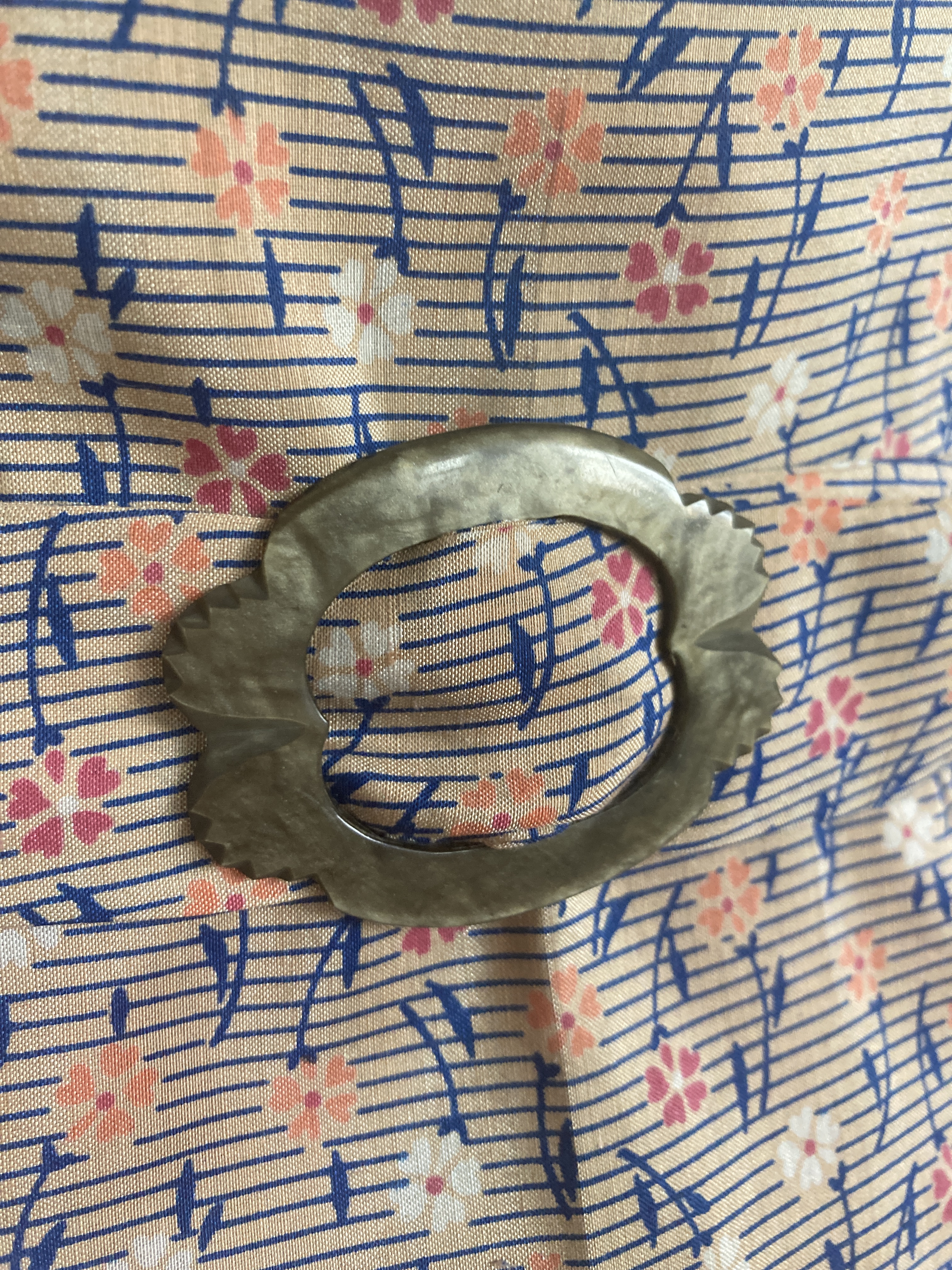 “Violet” is a mid- 1930s style blouse in viscose rayon, in the same style as “Alma” and “Edna” but without the side pocket. The cuffs, collar flap and the little detail in the belt in light cream viscose create an interesting contrast to the burgundy of the blouse. Vintage buttons adorn the cuffs and collar flap. The belt also features a vintage buckle.